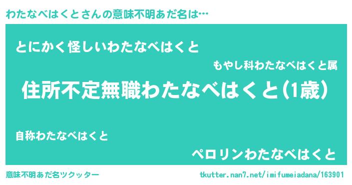 | 欧米人風あだ名 | 『わたなべはくと・ステッグマイヤー』 |