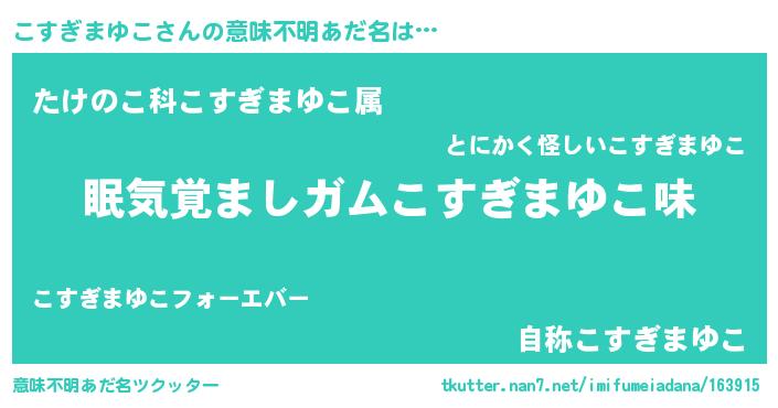 | 欧米人風あだ名 | 『ダニエルこすぎまゆこ』 |