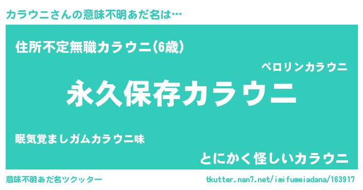 | ヒーロー風カッコイイあだ名 | 『ネオカラウニ』『仮面カラダー』 |