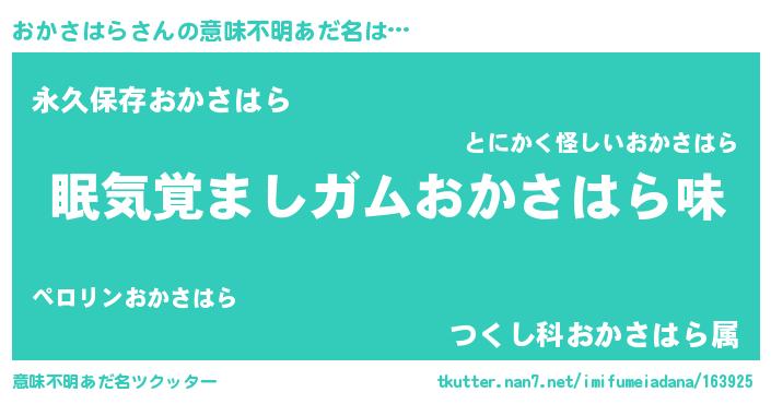 | ヘコむあだ名 | 『おかさはら(遠い目)』『おかっちょ』 |