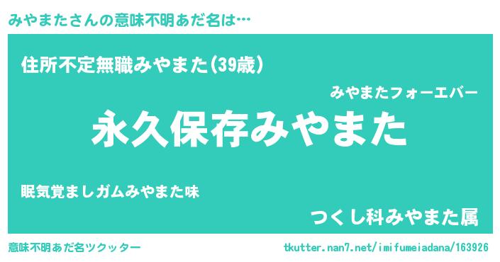 | ヒーロー風カッコイイあだ名 | 『ネオミヤマタ』『仮面ミヤダー』 |