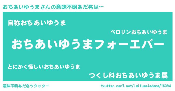 | 欧米人風あだ名 | 『おちあいゆうま・ステッグマイヤー』 |