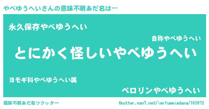 | ヘコむあだ名 | 『やべっちょ』『やべゆうへい(笑)』 |