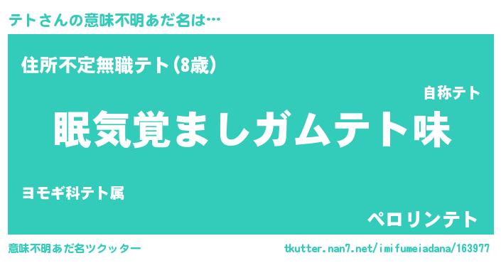 | ヘコむあだ名 | 『テトにゅー』『テトを』『酢こんぶ』 |