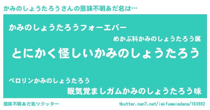 | ポケモン風あだ名 | 『ヒカミノショウタロウ』『カミノダネ』 |