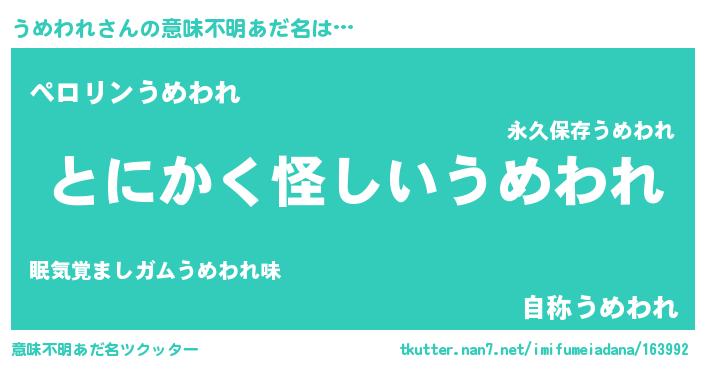 | 恥ずかしいあだ名 | 『ウメリンリン』『プリティーうめわれ』 |