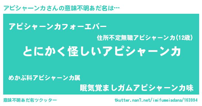 | ポケモン風あだ名 | 『ヒアピシャーンカ』『アピシダネ』 |