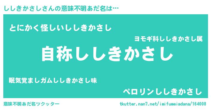 | 肩書あだ名 | 『ししきかさし総統』『ししきかさし社長』 |