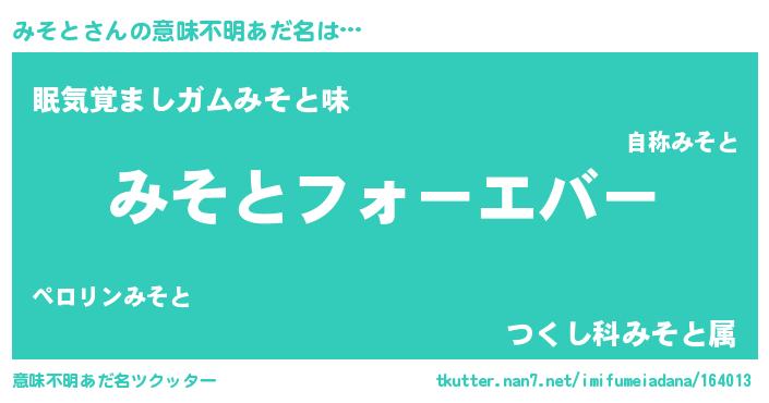 | ヘコむあだ名 | 『豆乳』『みそふぇ~』『みそと(笑)』 |