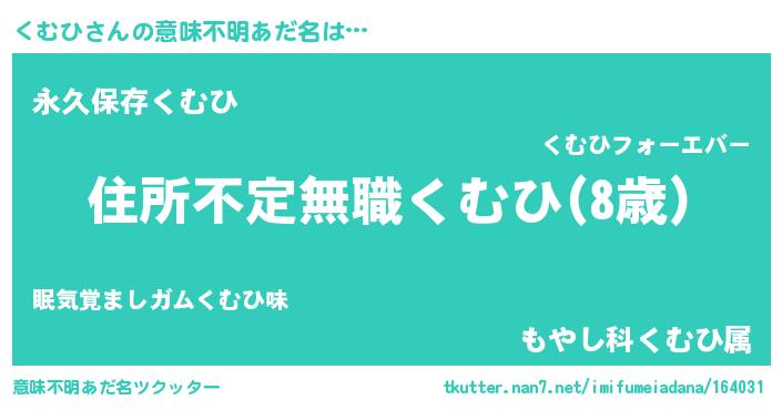| ヘコむあだ名 | 『くむひ(笑)』『なまこ酢』 |