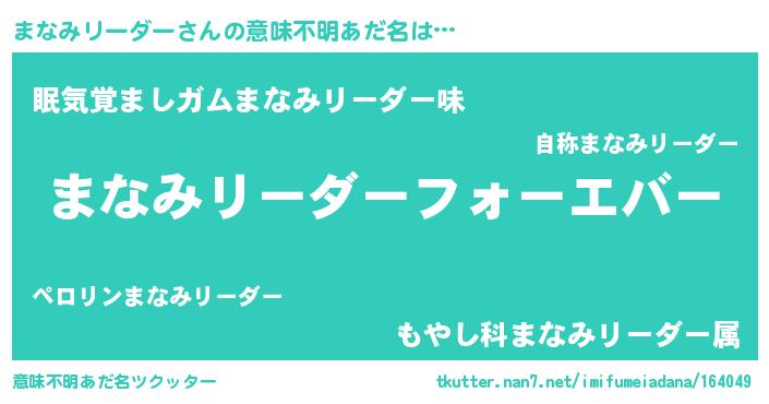 | 欧米人風あだ名 | 『まなみリーダークリステル』 |