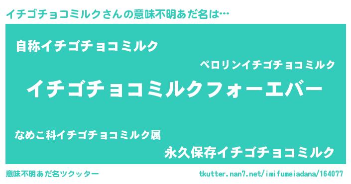 | ファンタジー風あだ名 | 『エターナルイチゴチョコミルクー』 |