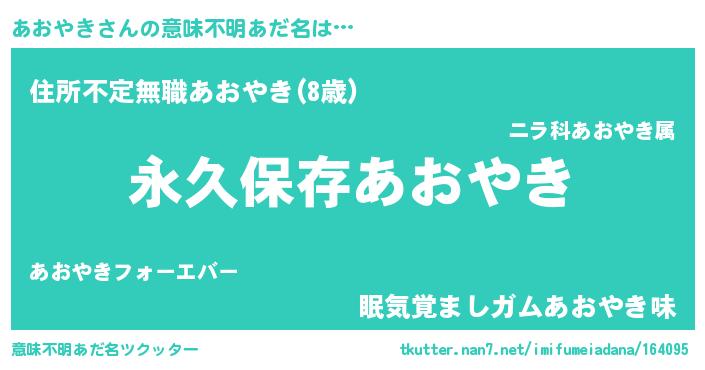 | 胡散臭い通販商品みたいなあだ名 | 『絶対に幸福をもたらす健康食品…その名も「あおやき」』 |