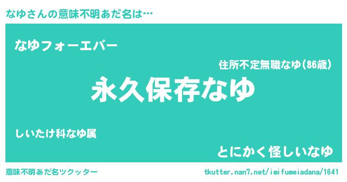 | 胡散臭い通販商品みたいなあだ名 | 『絶対に幸福をもたらす健康食品…その名も「なゆ」』 |