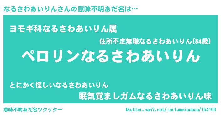 | 胡散臭い通販商品みたいなあだ名 | 『モテモテ間違いなしブレスレット…その名も「なるさわあいりん」』 |