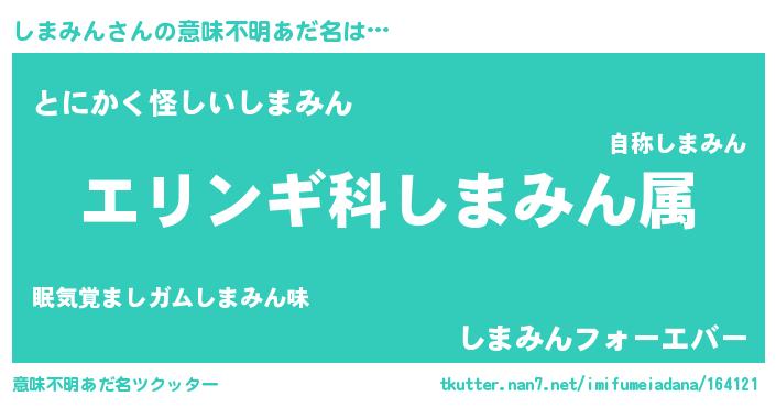 | 男性向けラノベタイトル風あだ名 | 『シマミンスレイヤー』 |