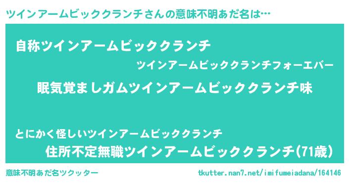 | 男性向けラノベタイトル風あだ名 | 『ノーゲーム・ノーツインアームビッククランチ』 |