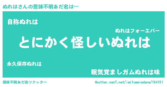 | ヘコむあだ名 | 『ぬれっちょ』『牛乳』『ぬれは(爆)』 |