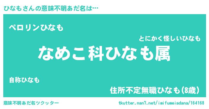 | ヘコむあだ名 | 『ひなふぇ~』『ひなお』『レバニラ』 |