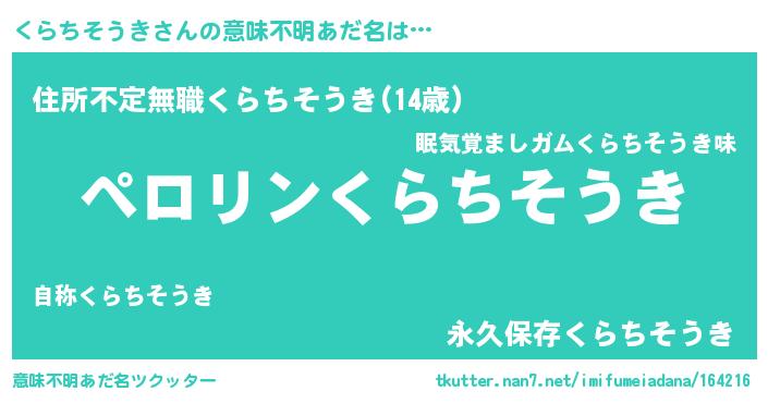 | 男性向けラノベタイトル風あだ名 | 『くらちそうきの憂鬱』 |