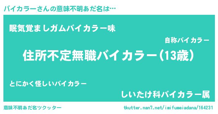 | 女子向けラノベタイトル風あだ名 | 『乙女ゲームの破滅フラグしかない悪役バイカラーに転生してしまった…』 |
