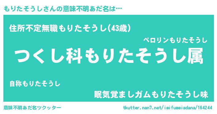 | ヘコむあだ名 | 『もりもー』『もりたそうし(笑)』 |