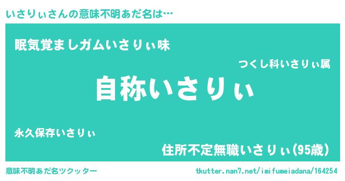 | ヒーロー風カッコイイあだ名 | 『ウルトラ戦士イサリィ』『仮面イサダー』 |