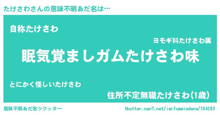 | ポケモン風あだ名 | 『タケゴンZ』『メロタッケ』 |