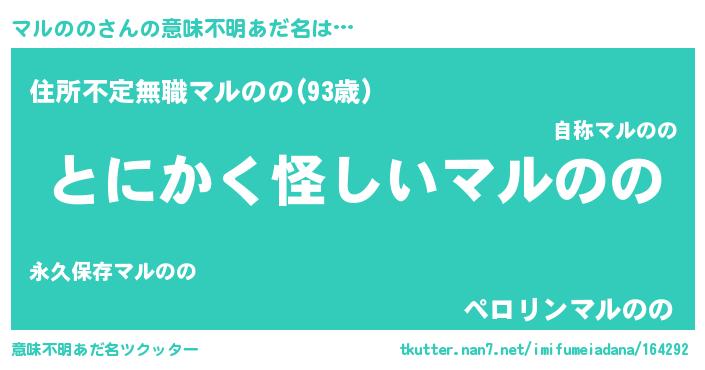 | 男性向けラノベタイトル風あだ名 | 『マルののの嫁は女の子じゃないと思った?』 |