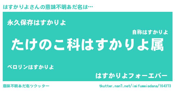 | ヘコむあだ名 | 『はすかりよ(遠い目)』『なまこ酢』 |