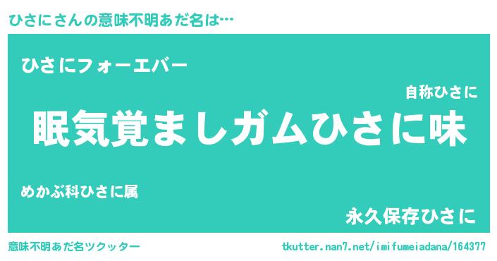 | 自動車の名前っぽいあだ名 | 『ランヒサギーニ』『ヒンR』『ヒクア』 |