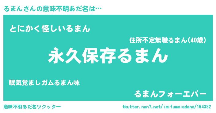 | 胡散臭い通販商品みたいなあだ名 | 『来世でも幸せになれる水素水…その名も「るまん」』 |