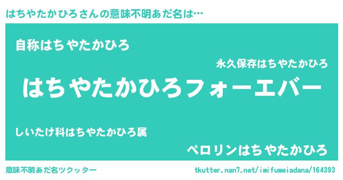 | 肩書あだ名 | 『はちやたかひろ総理大臣』 |