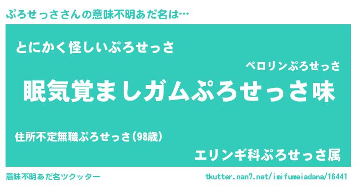 | 欧米人風あだ名 | 『アンジェラ・ぷろせっさ』 |