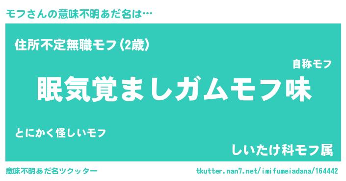 | ヒーロー風カッコイイあだ名 | 『慈愛の使者モフ』『仮面モフダー』 |