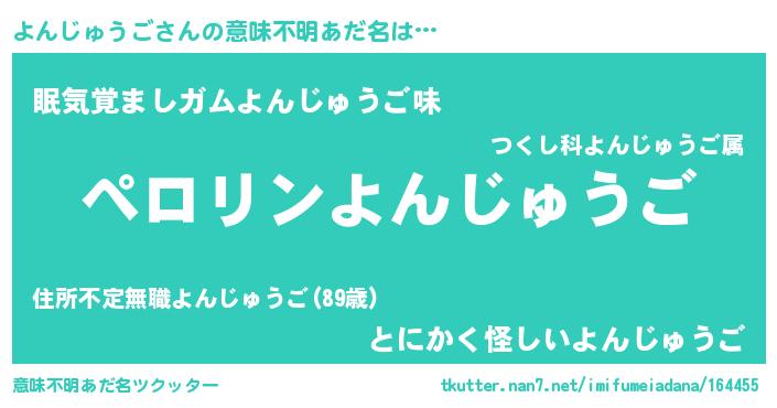 | 胡散臭い通販商品みたいなあだ名 | 『億万長者になれる霊験あらたかなお札…その名も「よんじゅうご」』 |