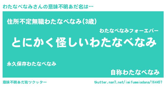 | 胡散臭い通販商品みたいなあだ名 | 『信頼と実績のサプリメント…その名も「わたなべなみ」』 |