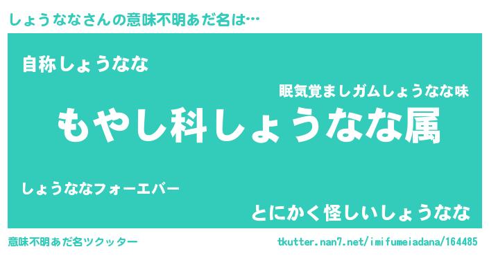 | 男性向けラノベタイトル風あだ名 | 『転生したらしょうななだった件』 |