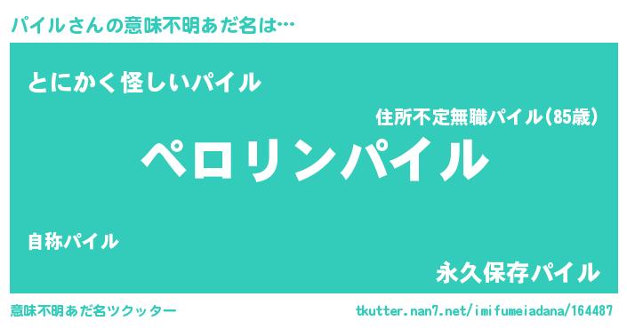 | 男性向けラノベタイトル風あだ名 | 『パイルの憂鬱』『魔弾の王とパイル』 |