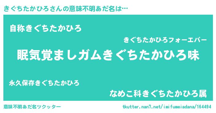 | ヘコむあだ名 | 『酢こんぶ』『きぐちたかひろ(笑)』 |