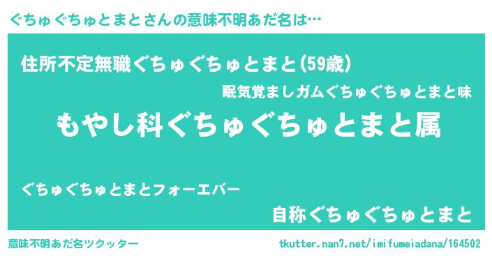 | 料理風あだ名 | 『ぐちゅぐちゅとまととほうれんそうの和風グラタン』 |