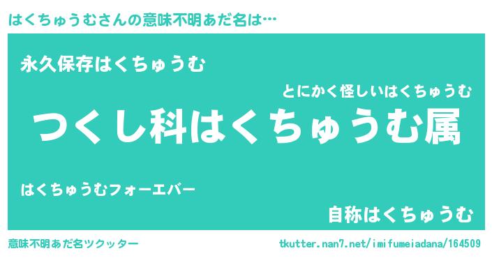 | 男性向けラノベタイトル風あだ名 | 『はくちゅうむ~年齢イコール彼女いない歴の魔法使い~』 |