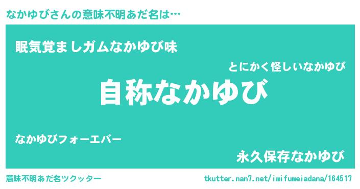 | 男性向けラノベタイトル風あだ名 | 『Re:なかゆびから始める異世界生活』 |
