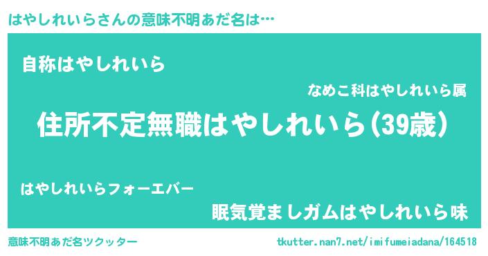 | 欧米人風あだ名 | 『ダレノガレはやしれいら』 |