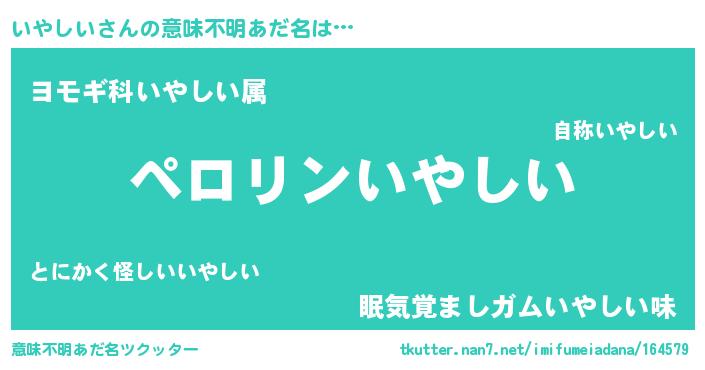 | 男性向けラノベタイトル風あだ名 | 『いやしいの憂鬱』『緋弾のイヤシイ』 |