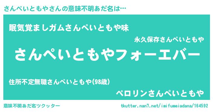 | 欧米人風あだ名 | 『さんぺいともやクリステル』 |