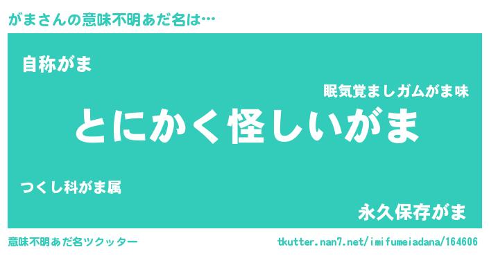 | 男性向けラノベタイトル風あだ名 | 『がまの嫁は女の子じゃないと思った?』 |