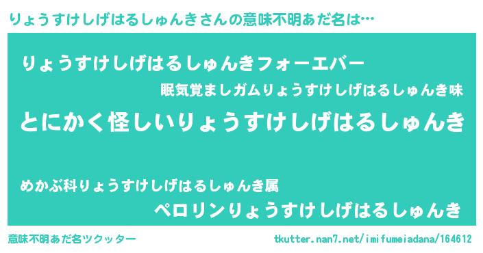 | ポケモン風あだ名 | 『ヒリョウスケシゲハルシュンキ』 |