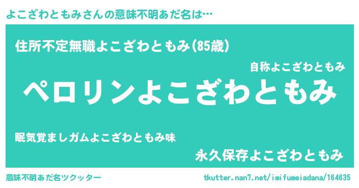 | 伝説のあだ名 | 『封印されしスナイパーよこざわともみ』 |