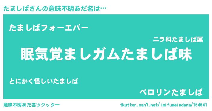 | 男性向けラノベタイトル風あだ名 | 『たましばに滅ぼされるだけの簡単なお仕事です』 |